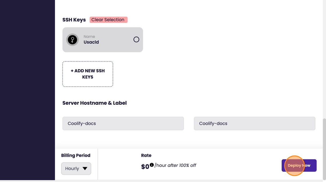 In a new tab, navigate to http://:8000 exchanging with the coolify machines IP address.